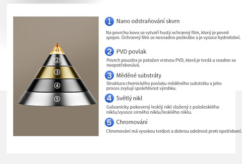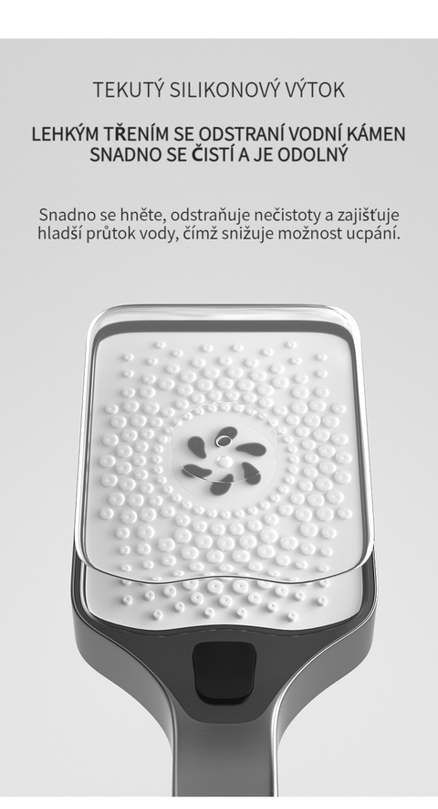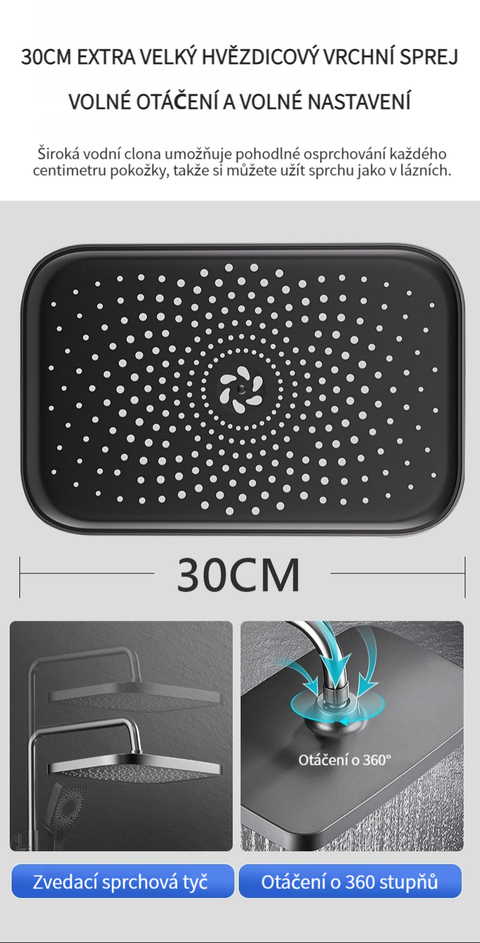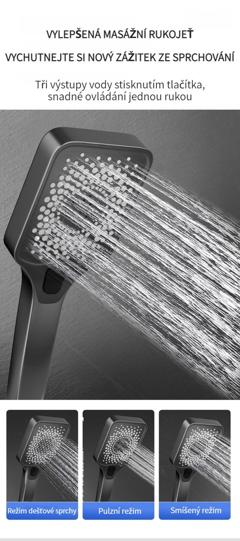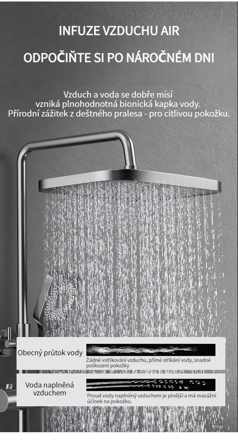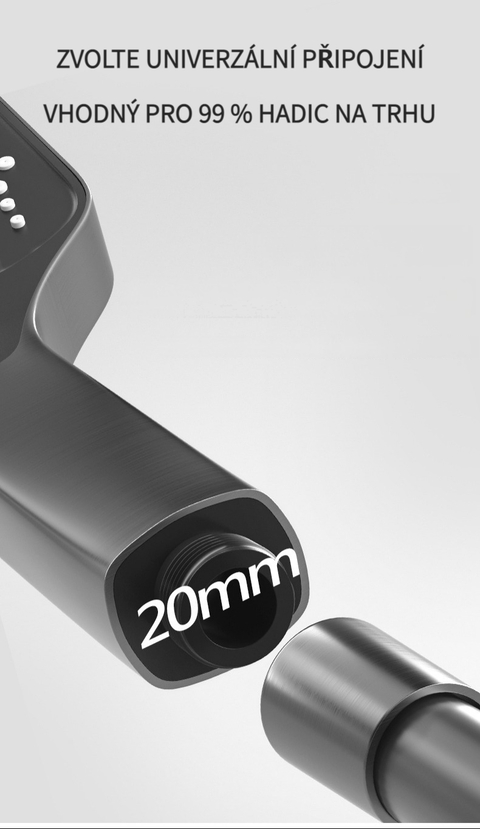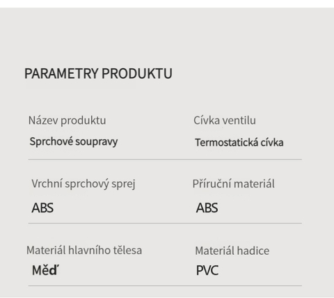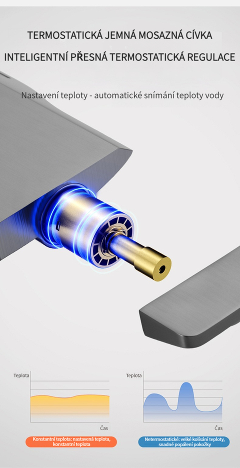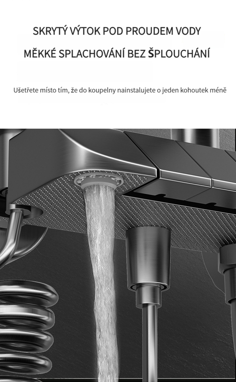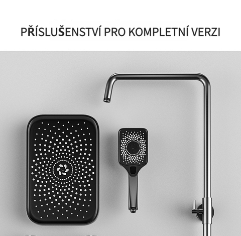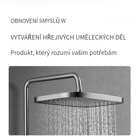 Multifunkční domácí sprchová souprava s klavírními tlačítky, digitálním ukazatelem teploty a rukojetí pro horkou a studenou vodu.